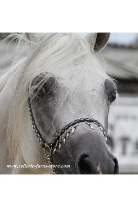 Licol "Medium " Licol de show base noir avec galon argent/noir mélangé Le plus : un modèle idéal sur chevaux gris, il soutient la robe et illumine le cheval Même base que le "greymed" mais...